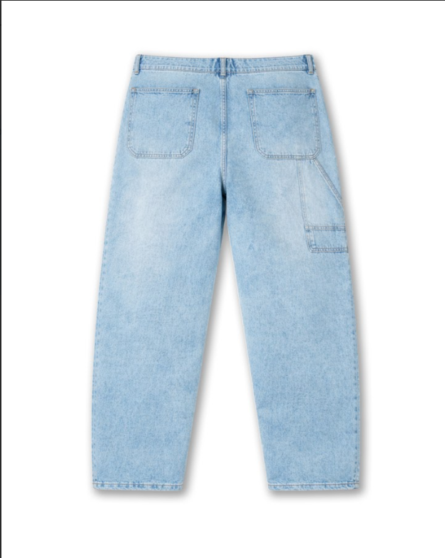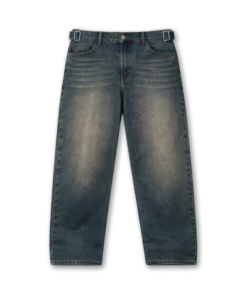 Descripción: El diseño es de corte recto y amplio (tipo straight o relaxed fit), con pernera ancha que cae de forma suelta. Tiene cuero y botón personalizado de la marca, con reguladores en la parte lateral de la cintura como detalle y para más ajuste al cuerpo.