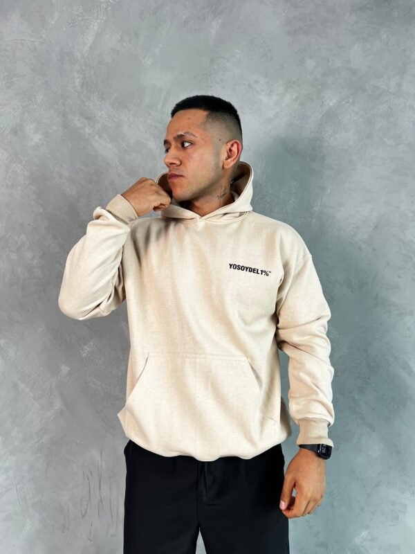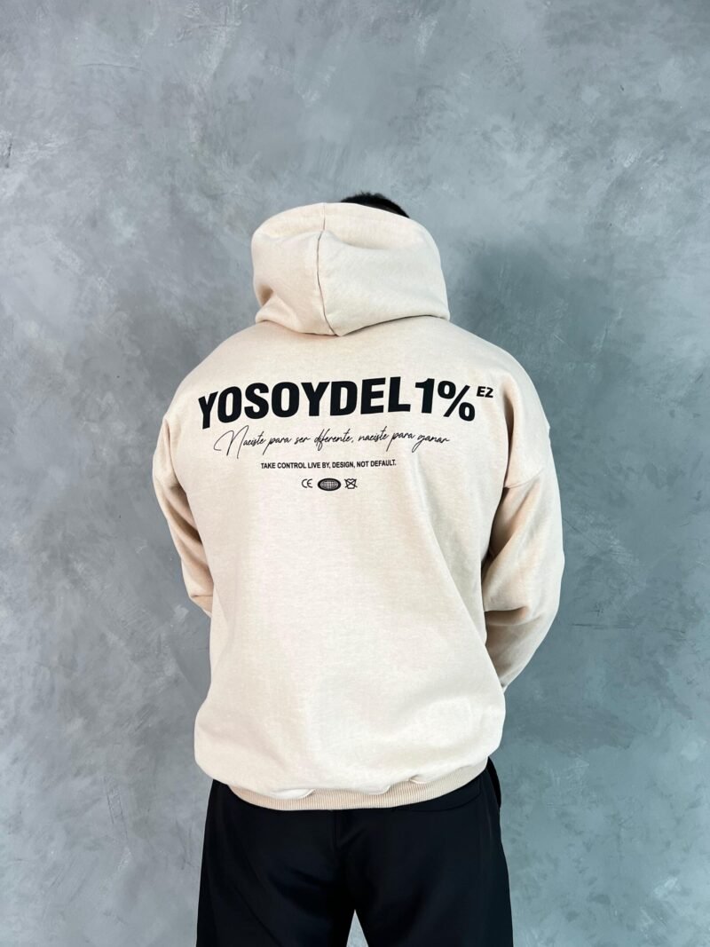 Observa los detalles que hacen única a esta polera beige. El acabado impecable de sus costuras, la calidad del ribete en el cuello y puños, y la suavidad de su tejido que te invitará a llevarla una y otra vez. El mensaje «Yo Soy El 1%» está cuidadosamente centrado, convirtiéndose en el punto focal de tu atuendo, perfecto para iniciar conversaciones y expresar tu identidad.