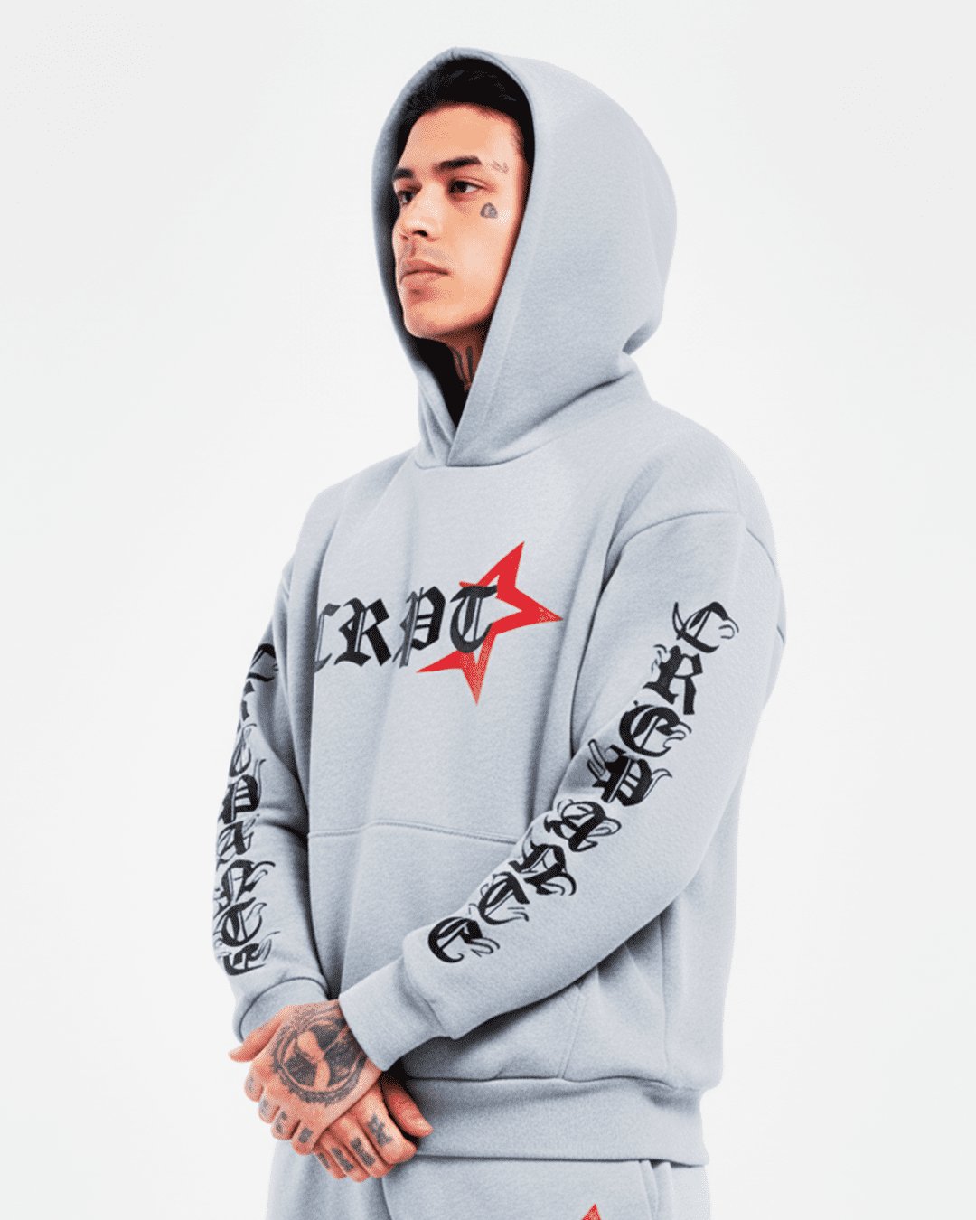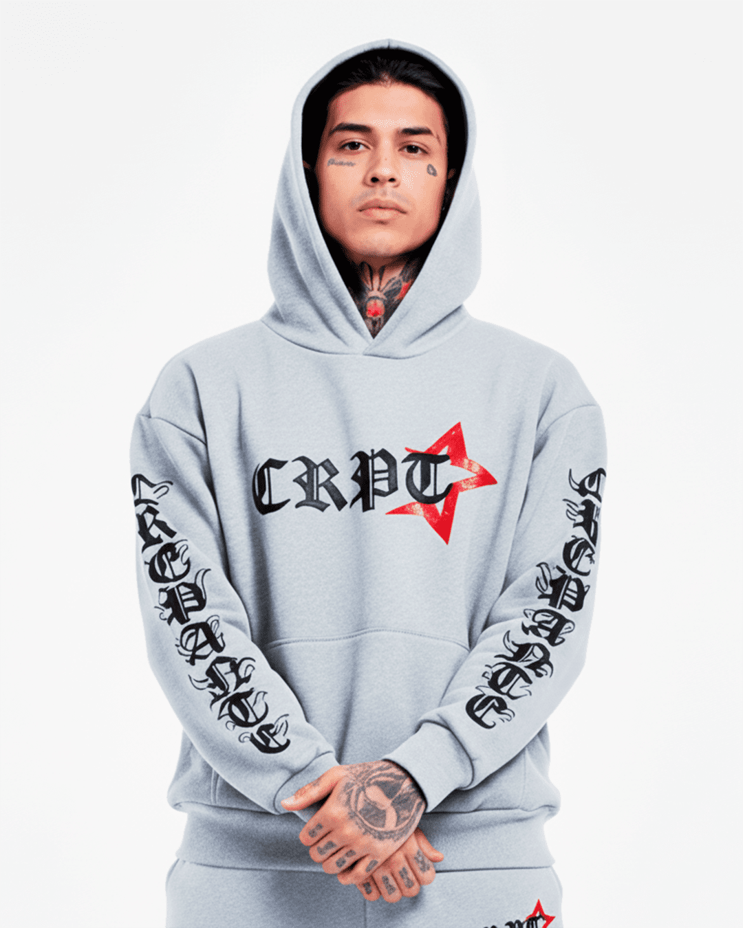 Analicemos los detalles que hacen de la Polera Melange Set Drip una pieza de culto. El logo «CRPT» en tipografía gótica no es una elección al azar. Evoca una estética disruptiva, un código secreto que solo los entendidos reconocen. Es un símbolo de pertenencia a un clan, el clan Ezzeta. A su lado, la estrella roja texturizada irrumpe con fuerza, simbolizando la pasión, la energía y el punto de inflexión que nuestra marca representa en la moda urbana. Es un toque de rebeldía que captura todas las miradas.