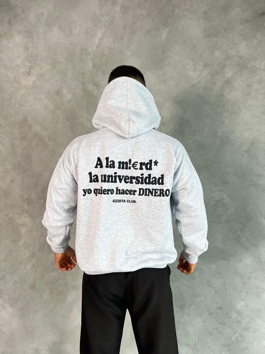 Polera corte zeta, con un corte intermedio entre polera Oversize y la Polera Boxy Fit, con una capucha mas grande y doble forro, con un despunte visible en el bolsillo frontal como detalle de costura, en la parte interna lleva Tuil con etiqueta de la marca, lleva un estampado resaltante en ambas mangas y uno en el pecho como toque final.