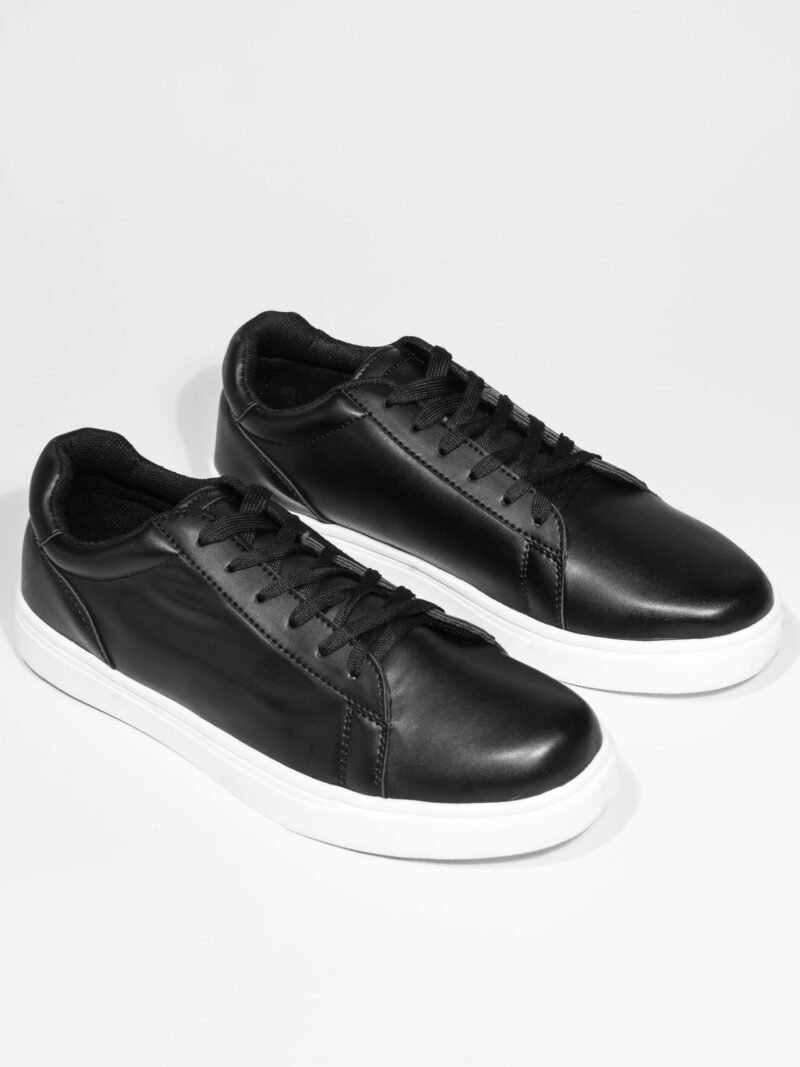 La Zapatilla Negro Con Suela Blanco Cuerina es una pieza esencial que se complementa a la perfección con otros artículos de nuestra colección. Para un look completo y armónico, te sugerimos combinarla con nuestros joggers negros oversize o nuestros pantalones camel estilo Old Money para un estilo casual pero sofisticado.